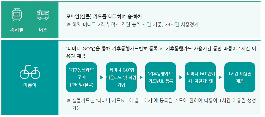 ※ 지하철의 경우 서울지역 내 역에서 승차 후 서울지역 외 역에서 하차할 경우 기후동행카드 사용불가