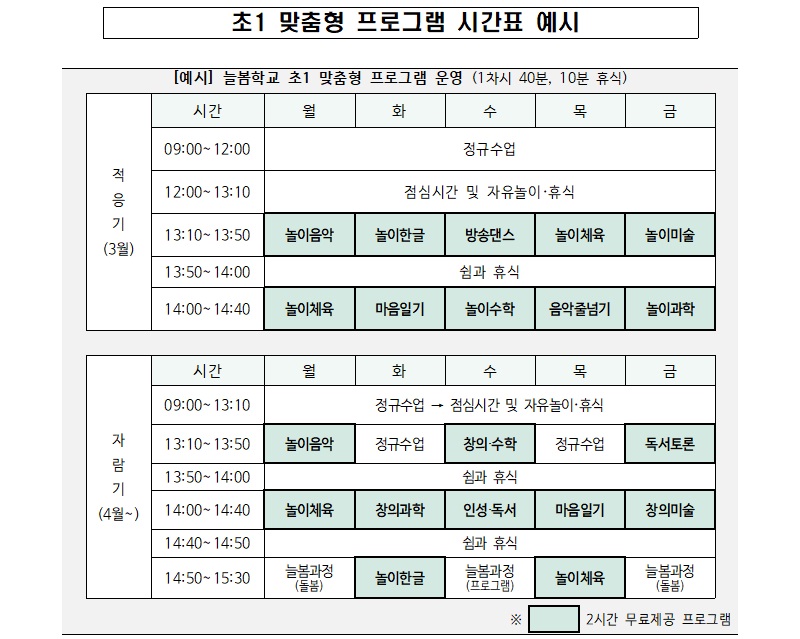 희망하는 초1학년 누구나 늘봄 이용 지원. 2026년까지 모든 학교로 확대