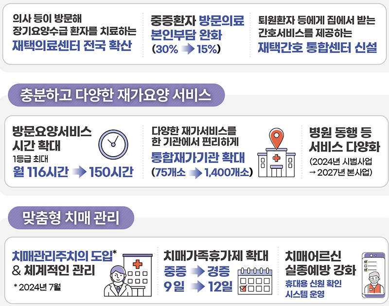 장기요양 재택의료센터 전국 확산과 건강보험 적용 확대 등 재택의료를 활성화한다.
