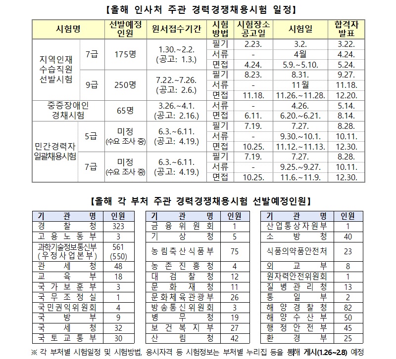 인사처 주관 지역인재.중증장애인 등 490명, 각기관 주관 1574명 등.