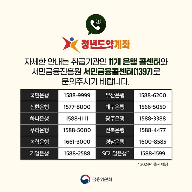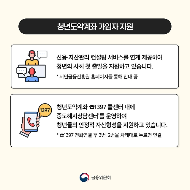 - 청년도약계좌 ☎1397 콜센터 내에 중도해지상담센터를
