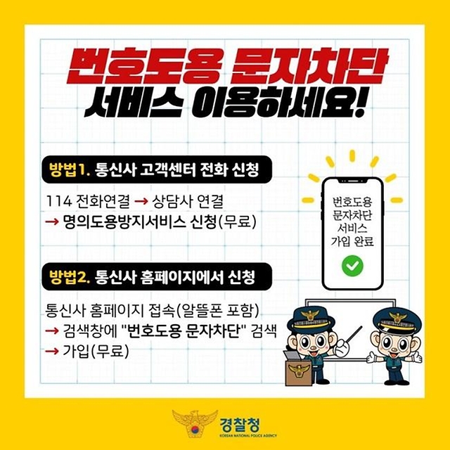 번호도용 문자차단 서비스로 당하지 말고, 예방하세요!