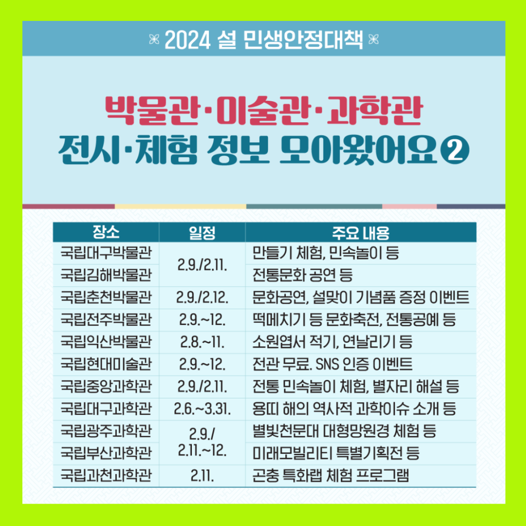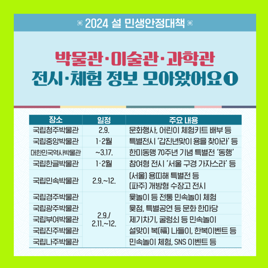 여행도 가고 전시도 보고 다양한 즐길거리와 함께 즐거운 설 연휴 보내세요!