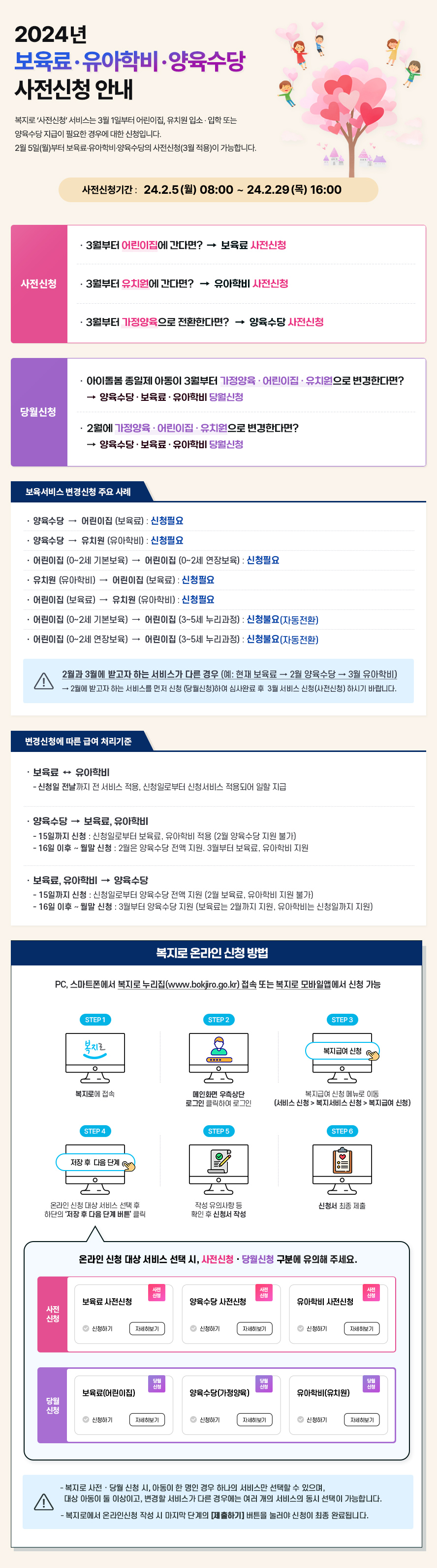 2024년 보육료, 유아학비, 양육수당 사전신청 안내